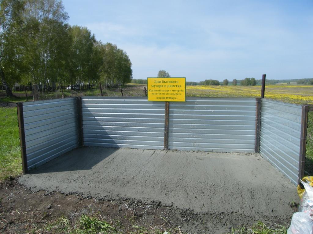 Для установки контейнеров должна быть оборудована специальная площадка с бетонным или асфальтовым покрытием, ограниченная бордюром и зелеными насаждениями (кустарниками) по периметру и имеющая подъездной путь для автотранспорта.