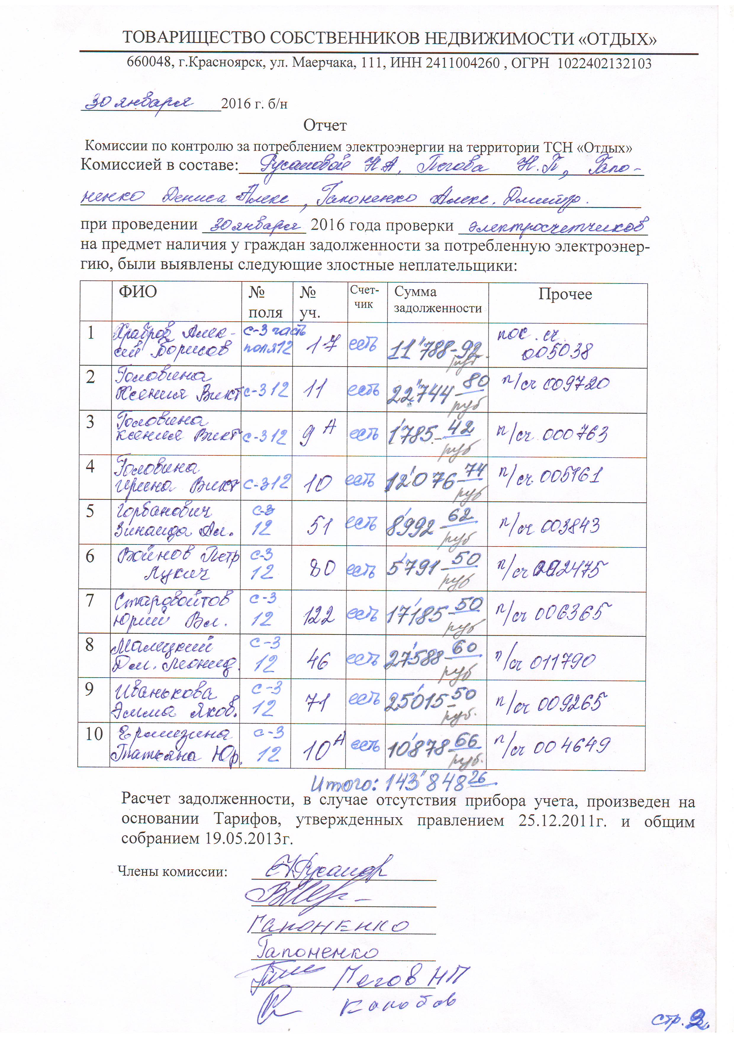 Всем гражданам, потребляющим электроэнергии через сети ТСН "Отдых", предлагается ...