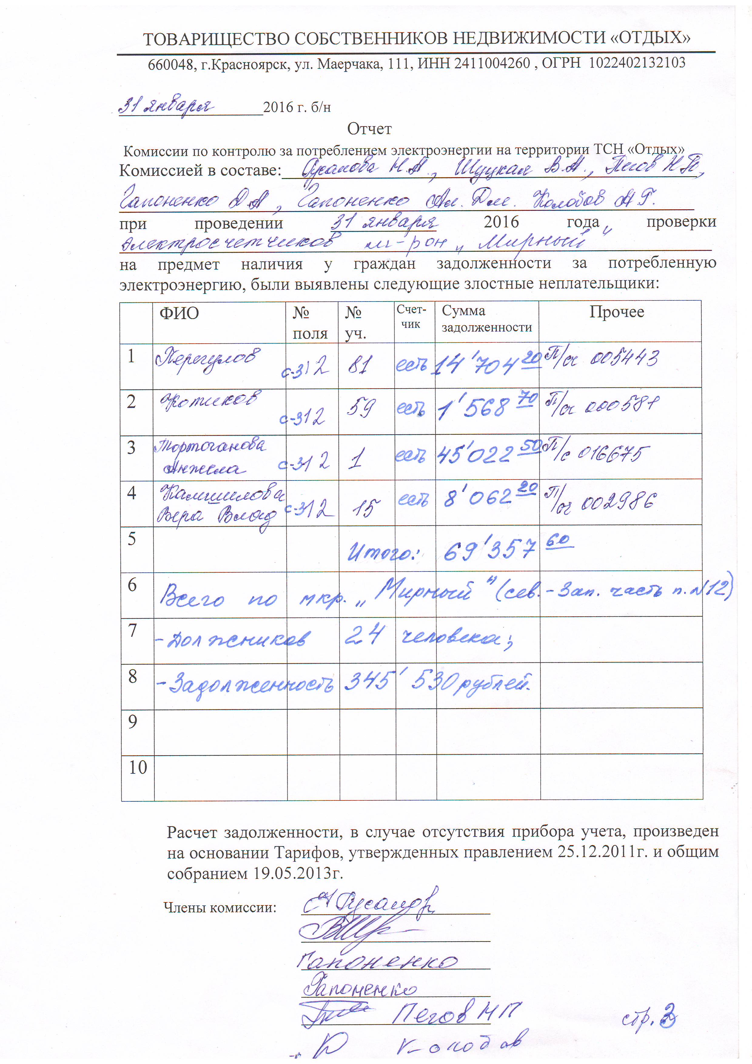 Уважаемые граждане! Уведомление в адрес ТСН «Отдых» о расторжении договора по электроснабжению № 922 12.10.2006г. от ПАО «Красноярскэнергосбыт» не поступало. Голосование граждан ...
