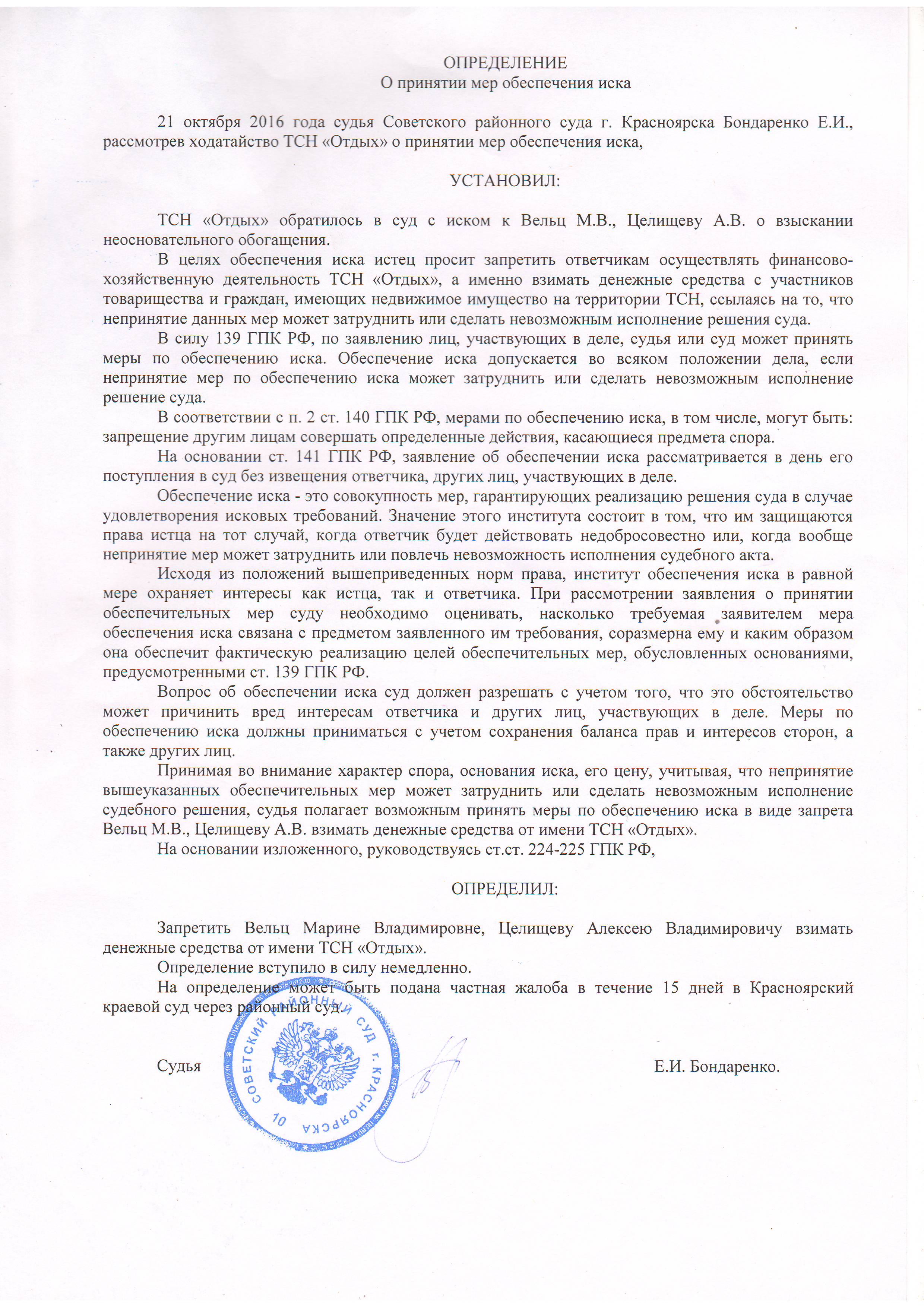- В Советском суде г. Красноярска ТСН "Отдых " взыскивает неосновательное обогащение с бывшего кассира cкачать файл (JPG, 952.1 КБ)