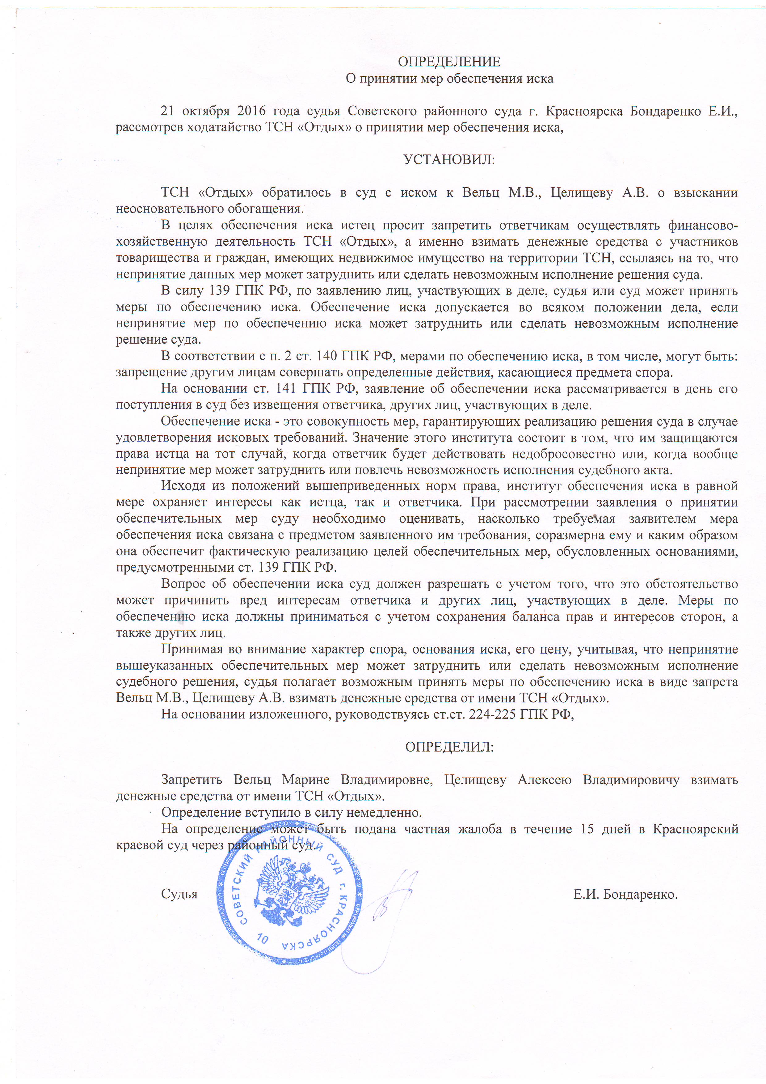 - Решение железнодорожного районного суда г. Красноярска об обязании М.В. Вельц передать ТСН "Отдых" ведомости уплаты членских, целевых и иных взносов cкачать файл (PDF, 6 МБ)